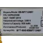 Литий-ионный аккумулятор EB-BF712ABY имеет заявленную емкость в 930 mAh и полностью совместим со смартфоном Samsung Galaxy Z Flip 3 (F711B). Разницы, помимо изготовителя, практически нет. Единственное важное отличие - его эксплуатационные характеристики немного отличаются от батарейки, изготовленной на заводе-производителе самого смартфона. Прежде всего это сниженная (порядка 10-12% от заявленной) емкость и меньший срок эксплуатации. Если батарейка с завода прослужит Вам не менее двух лет и выдержит около 600-800 циклов заряда/разряда, то от этой стоит ожидать уверенной работы в течение года или 400-500 полных циклов до того, как максимальная емкость упадет до 75%. Если Вы не хотите переплачивать за бренд или желаете сэкономить, при этом получив приемлемую по качеству запчасть, то эта батарейка - Ваш вариант..